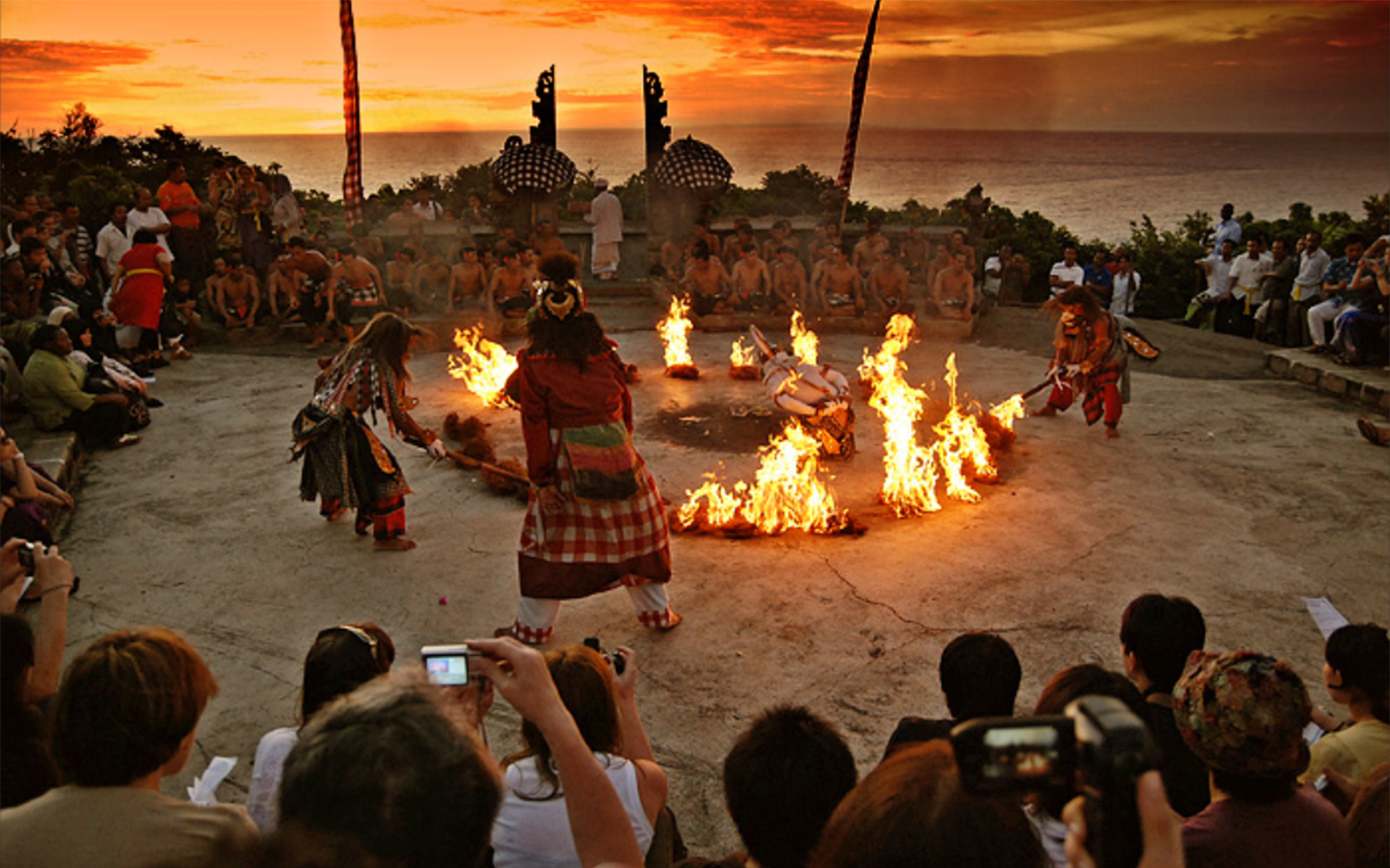 Kecak dance show with an ocean backdrop